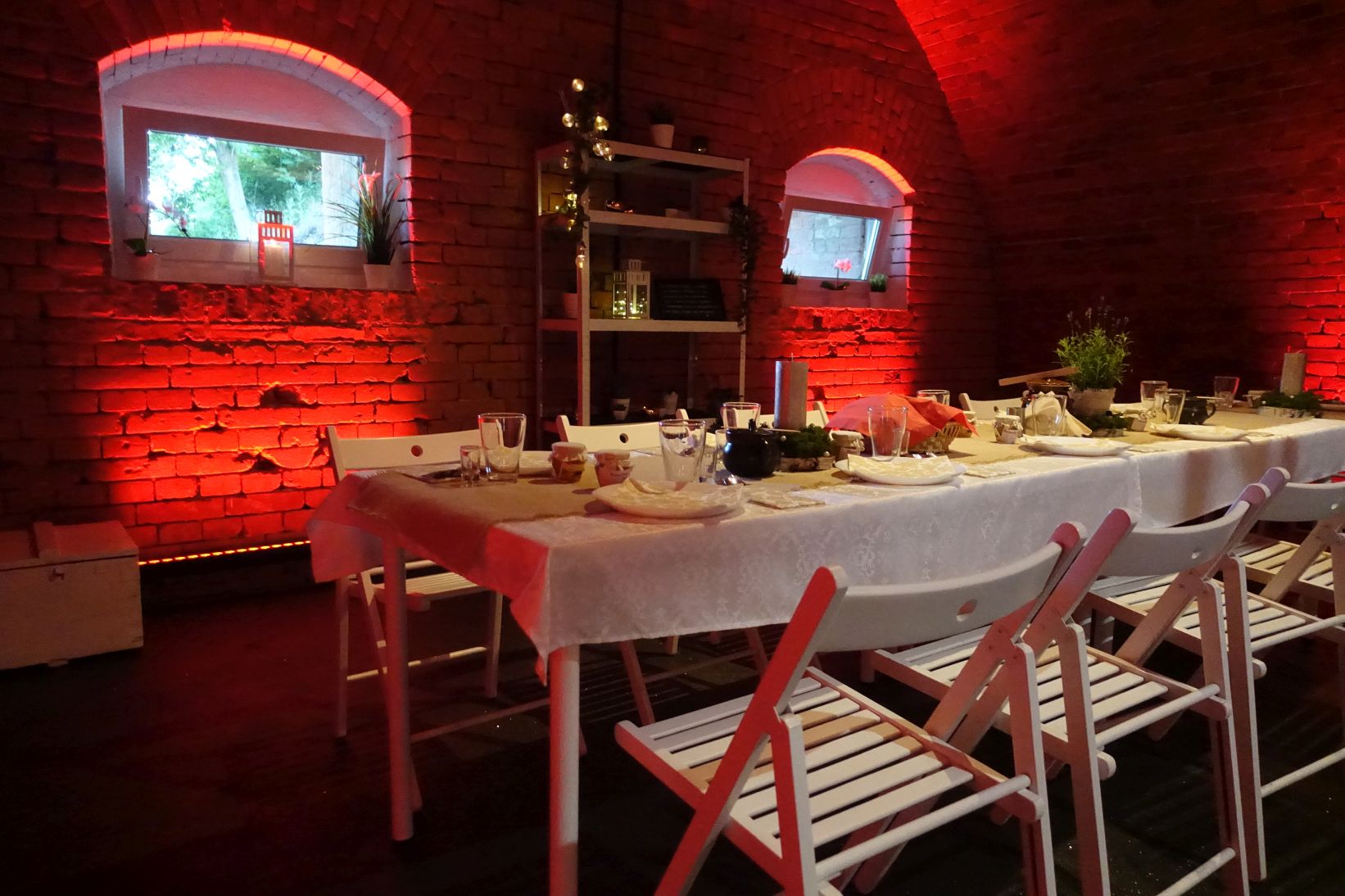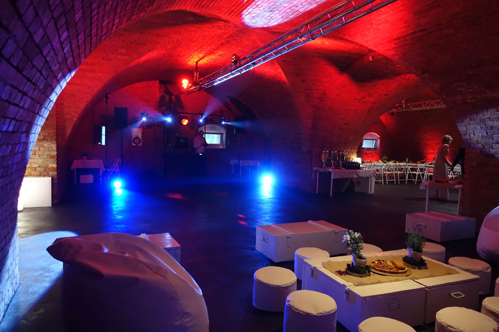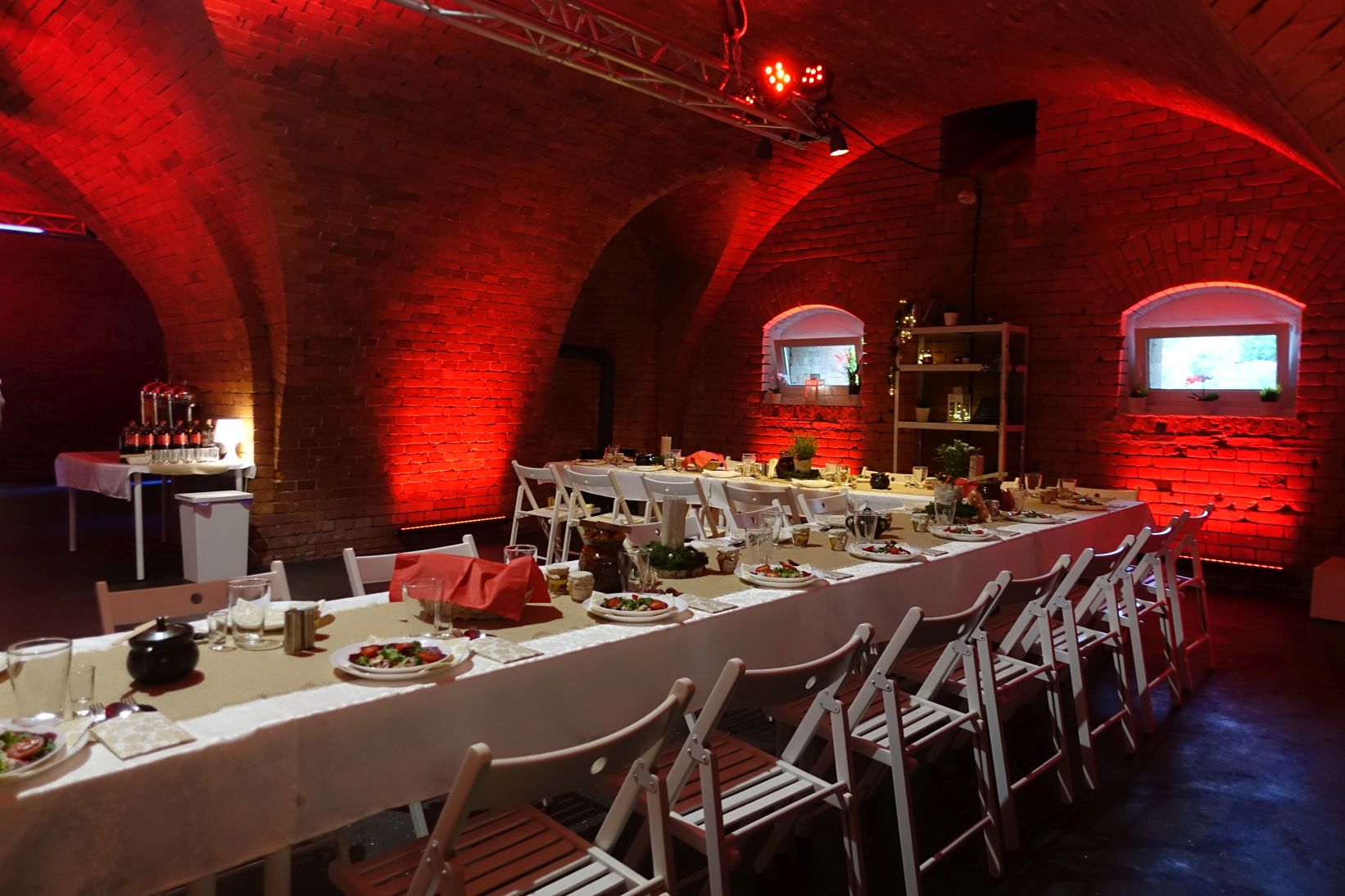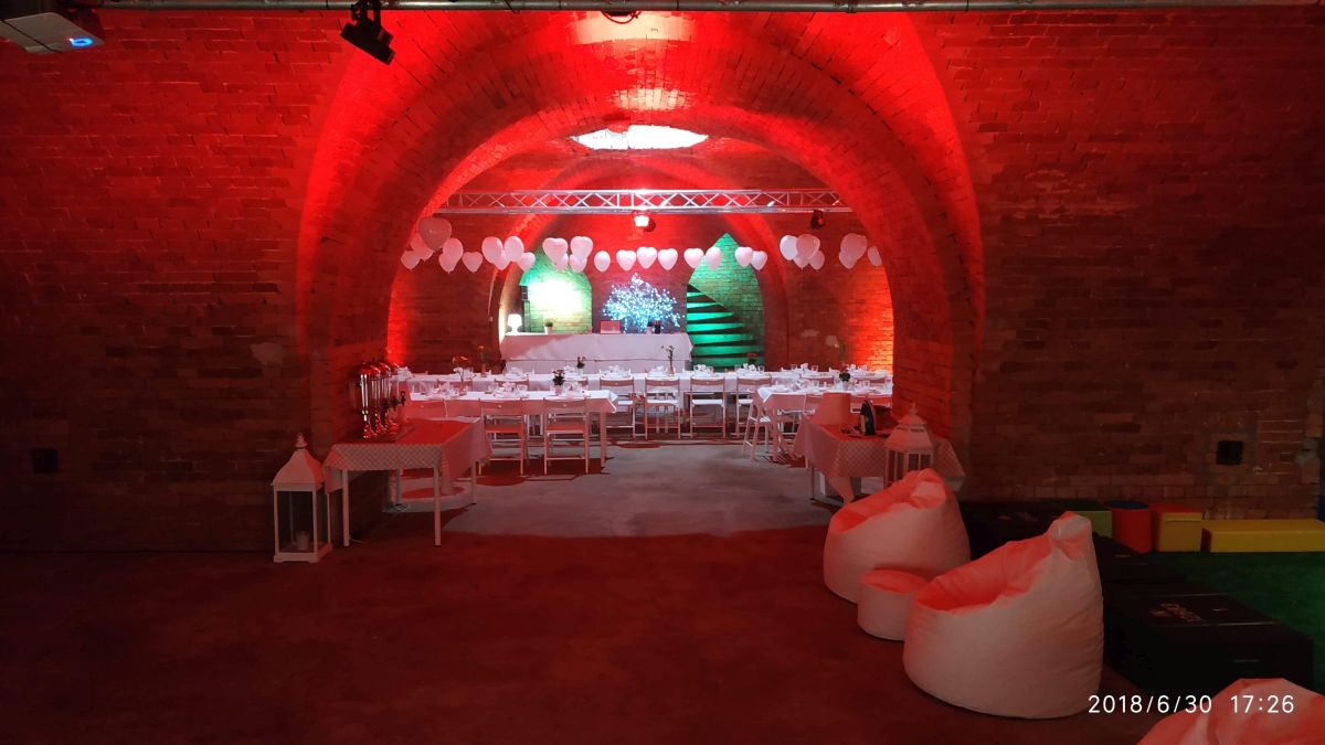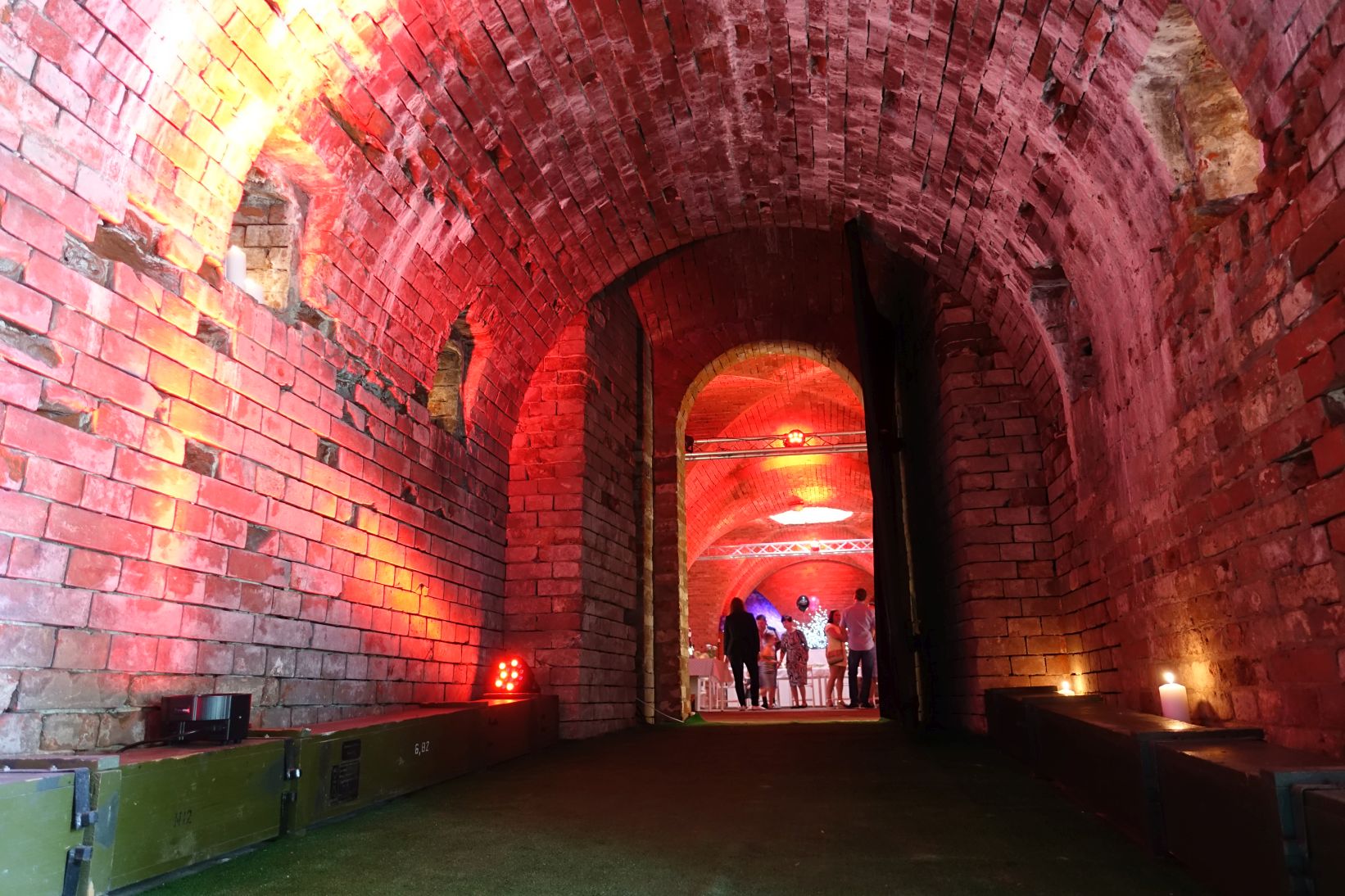 Historyczny budynek redity lunety, był w czasach carskiej Rosji, działobitnią środkową na froncie poligonalnym inaczej na Froncie Księcia Warszawskiego. Służył typowo celom obronnym i stanowił wraz z całą swoją skomplikowaną strukturą budowlaną najwyższy kunszt ówczesnej myśli inżynierskiej. W obecnych czasach powstał tu Front Modlin – a w samym środku znajduje się ta przepiękna sala o niespotykanym charakterze i oprawie wizualnej. Z całą pewnością na długo zapada w pamięć. Brokatowa podłoga, ceglane ściany i dobra energia – musicie to zobaczyć sami.