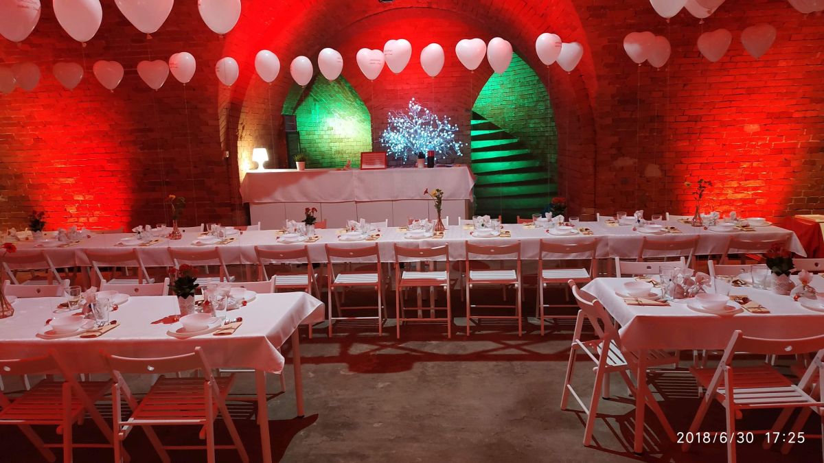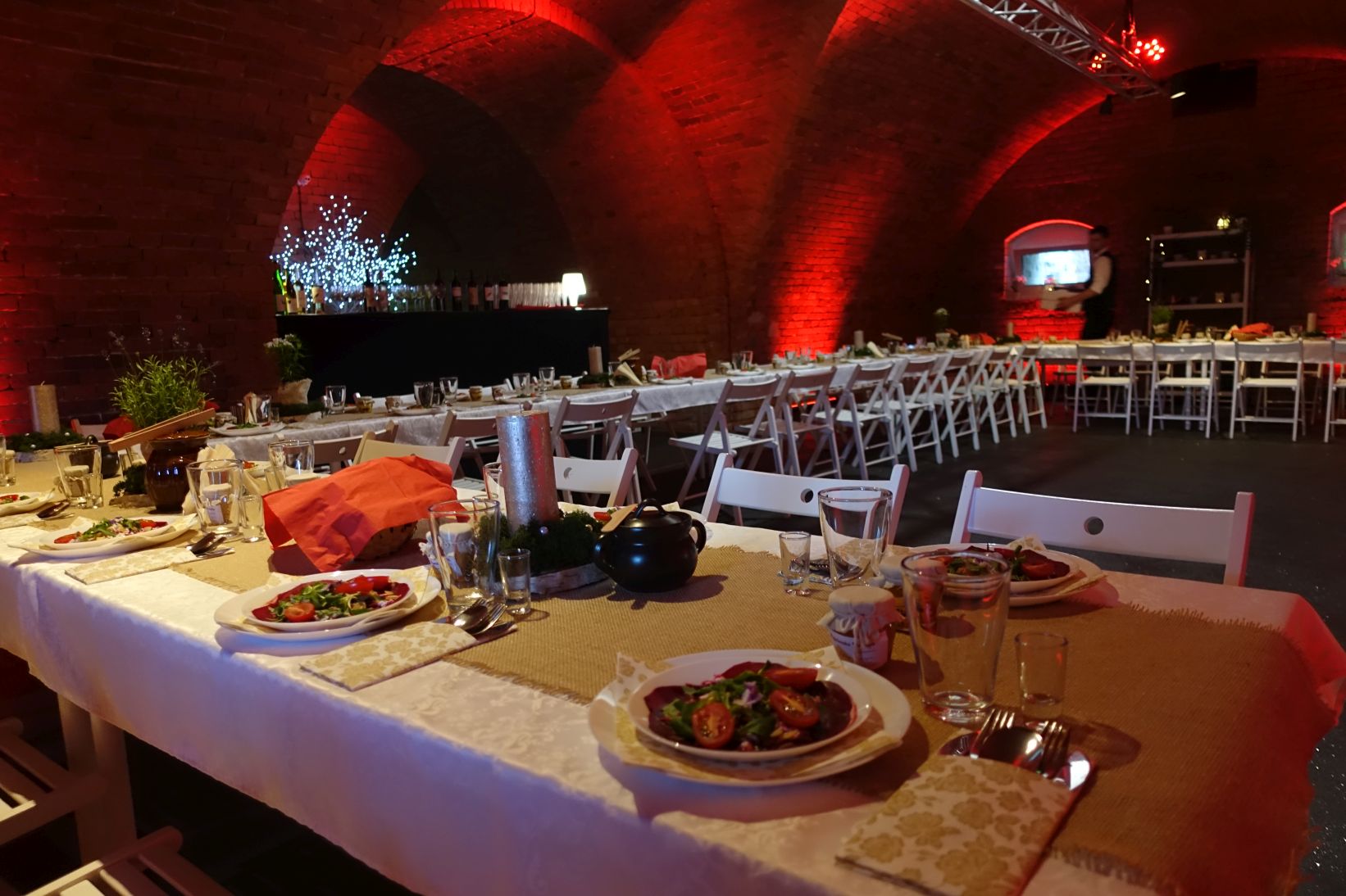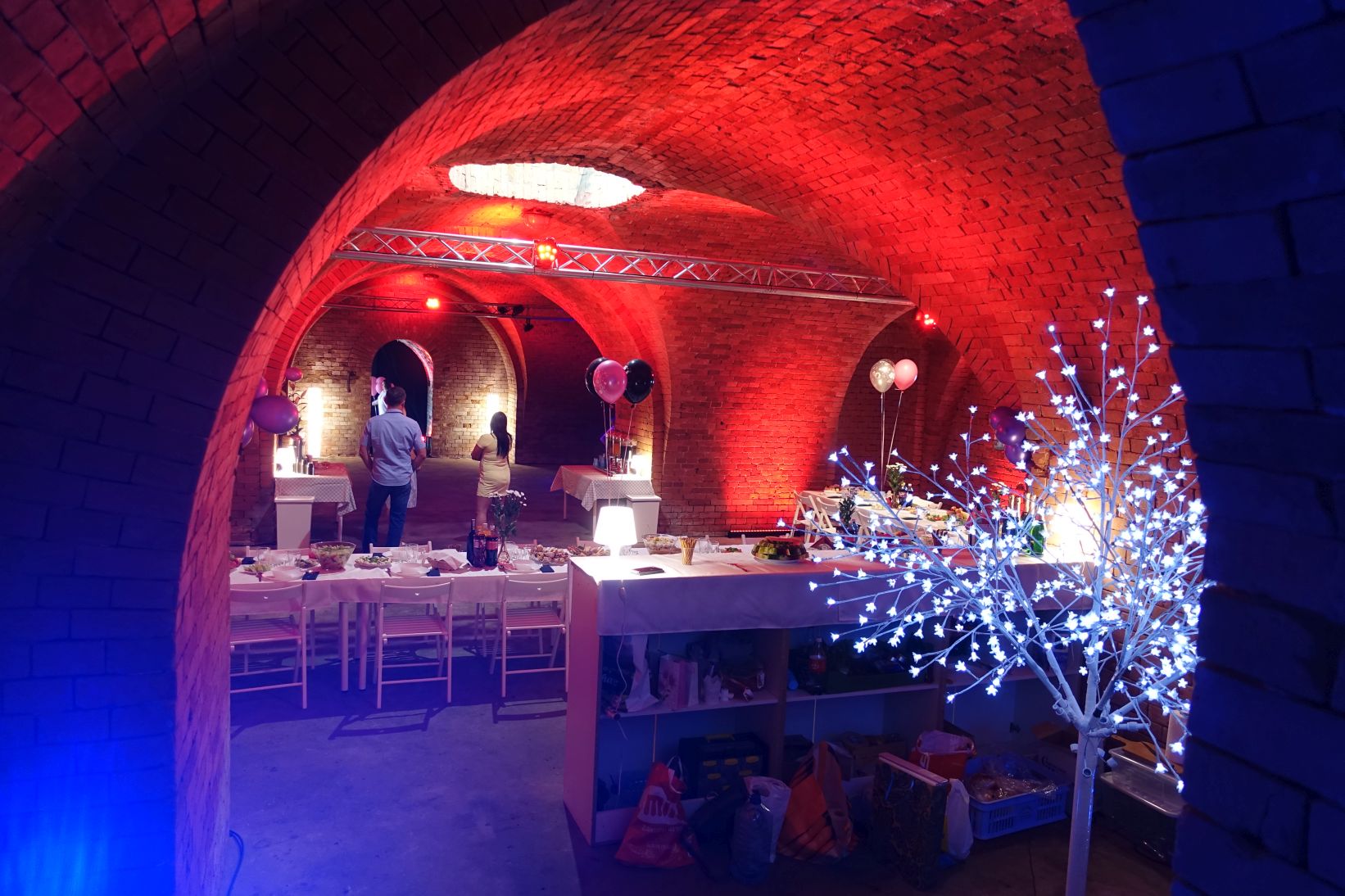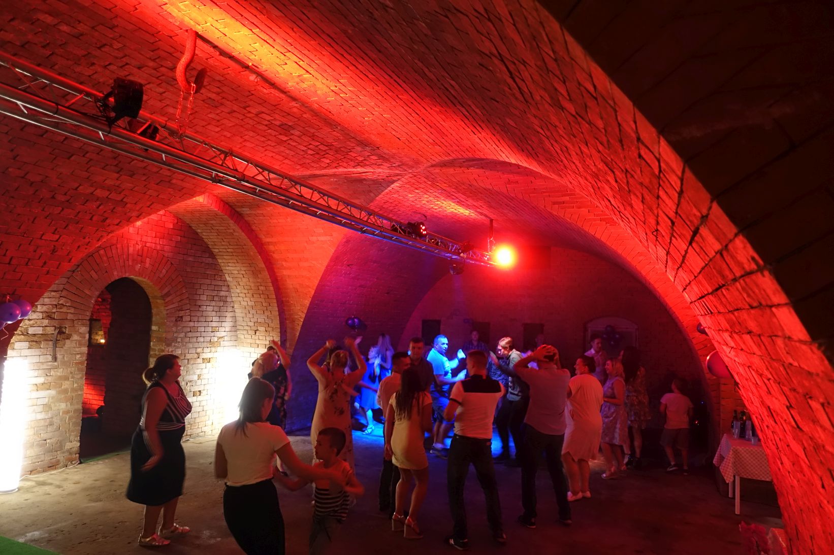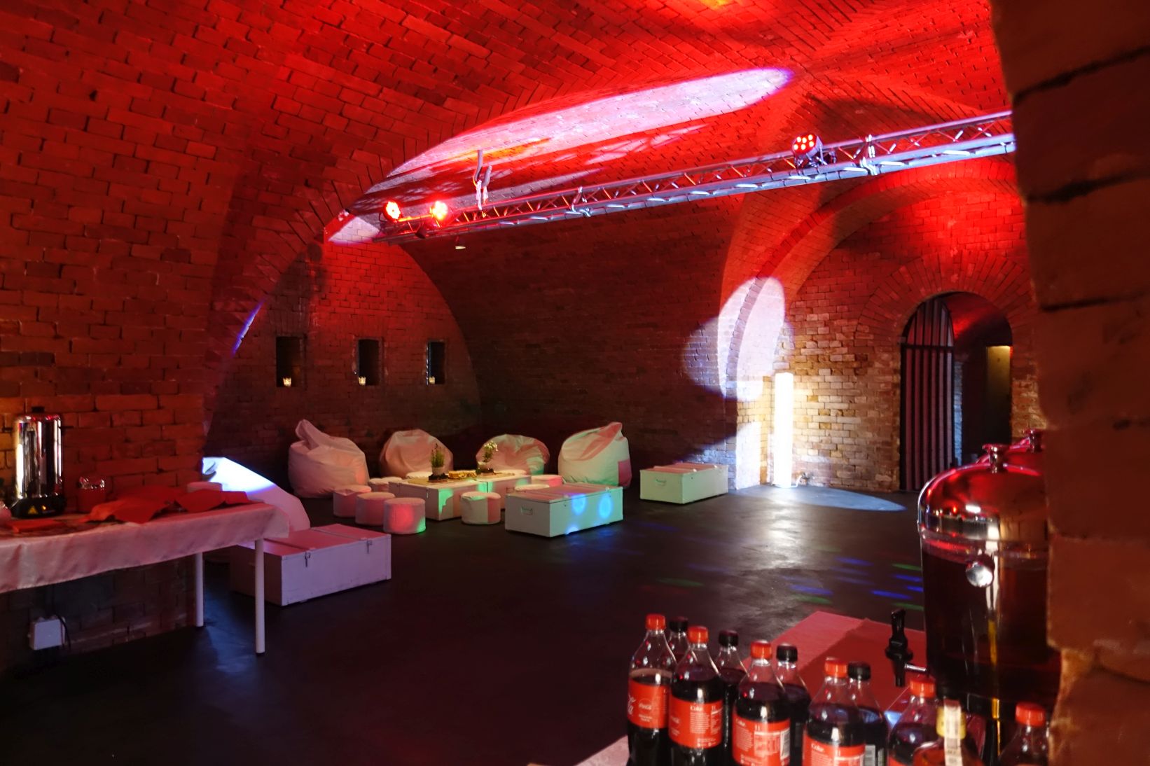 Historyczny budynek redity lunety, był w czasach carskiej Rosji, działobitnią środkową na froncie poligonalnym inaczej na Froncie Księcia Warszawskiego. Służył typowo celom obronnym i stanowił wraz z całą swoją skomplikowaną strukturą budowlaną najwyższy kunszt ówczesnej myśli inżynierskiej. W obecnych czasach powstał tu Front Modlin – a w samym środku znajduje się ta przepiękna sala o niespotykanym charakterze i oprawie wizualnej. Z całą pewnością na długo zapada w pamięć. Brokatowa podłoga, ceglane ściany i dobra energia – musicie to zobaczyć sami.